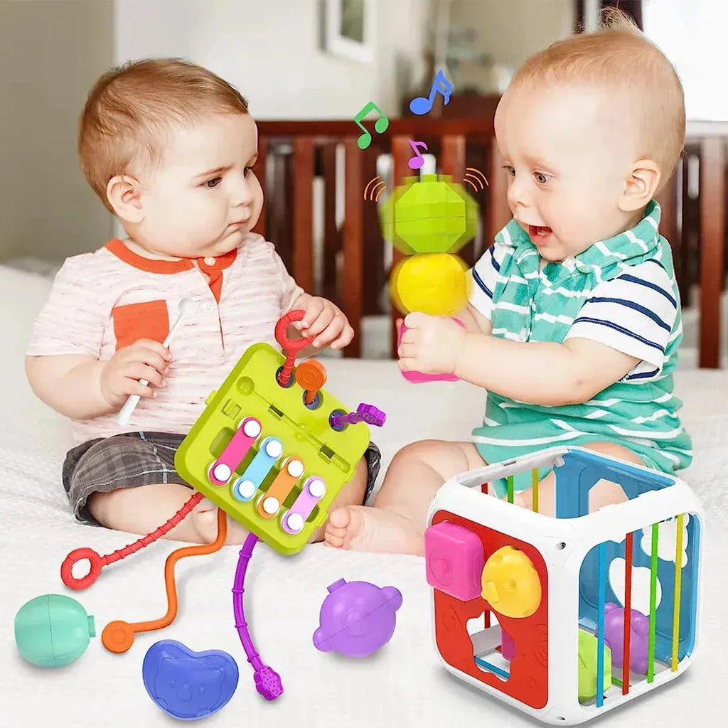O Cubo de Desenvolvimento Montessori é um conjunto completo com 7 atividades montessorianas projetadas para proporcionar uma experiência sensorial enriquecedora para os pequenos!