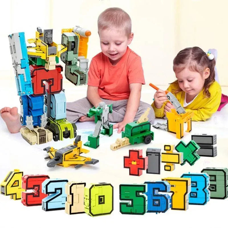 O Transformers é um conjunto de blocos de números e sinais matemáticos que ao serem montados se transformam em um robô super divertido. Cada bloco representa um número que se converte em um carrinho ou robô incrível.